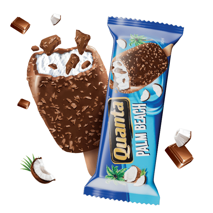 Escape to a tropical paradise in every bite with Quanta Palm Beach! Taste crunchy coconuts coated in rich chocolate in every delectable mouthful.